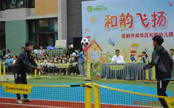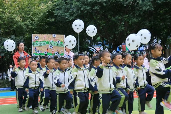 为充分调动孩子参加体育活动的积极性,增进孩子与家长之间的亲子关系,成都市成华区和韵幼儿园总园、馨韵分园于近日举办了以“和韵飞扬,足梦启航”为主题的足球亲子运动会。 运动员入场