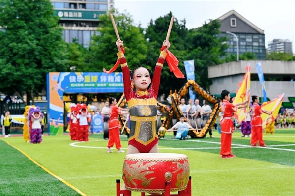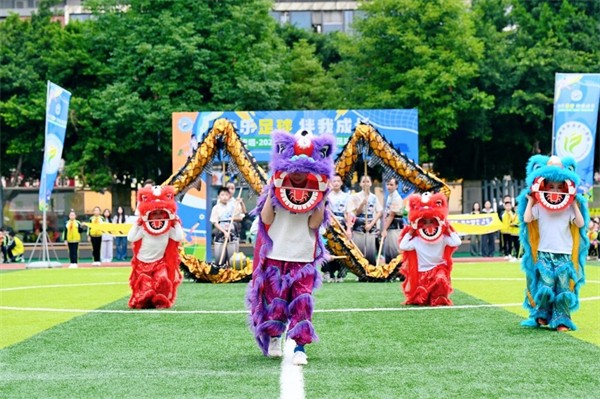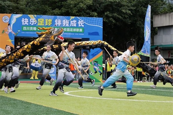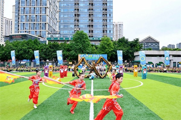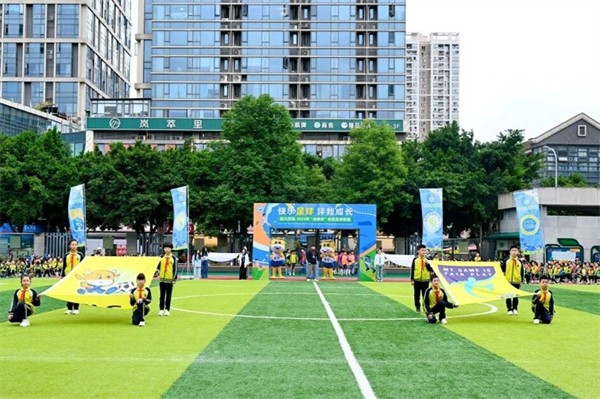 十载春秋砺初心,绿茵逐梦启新程。10月21日,四川贡嘎·2025年“金教杯”校园足球联赛开幕式暨揭幕战在成都市茶店子小学校举行。校园里,清雅茶香与青春活力交织,拼搏精神与运动激情碰撞,为这场足球盛会赋予了独特风采。 鼓震绿茵,开场秀《战鼓声声》点燃全场 战鼓擂动,声震八方。茶店子小学国宾分校的茶宝们活力登场,舞龙舞狮腾跃盘旋,五彩彩旗随风飘动,他们精神抖擞,鼓点铿锵递进,龙狮伴着节奏灵活穿梭,彩旗与鼓点同频共振。不仅彰显了少年的蓬勃朝气,更以震撼视听为足球盛宴奏响激情序章。