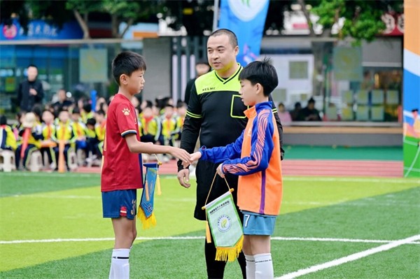 语寄荣光,书记致辞寄望赛场 作为金牛区首批全国青少年校园足球特色学校,茶小以足球为“1+4+N”体育特色项目核心,学校党委书记李强热情致辞,他表示“金教杯”为青少年搭建足球展示平台,助力学生德智体美劳全面发展,希望足球小将们能借赛事锤炼品格、突破自我、弘扬体育精神。未来,学校也将深耕足球特色教育,让绿茵场成为茶宝们的成长乐园。
