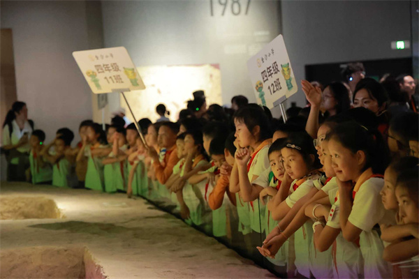 孩子们一边参观,一边认真听讲解,了解古蜀发展历史,感受古人的智慧。