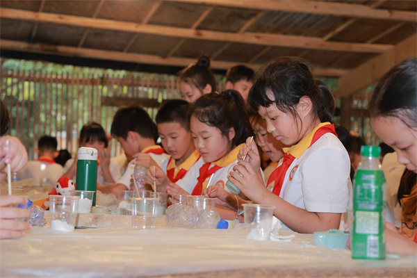 午饭后,他们又化身小小考古学家、铸造师和玉雕师,参与了手工实践课程,动手体验考古发掘、铸造青铜面具和制玉过程。通过亲身实践,孩子们体会到了考古学的独特魅力,感受到了古代匠人的智慧。