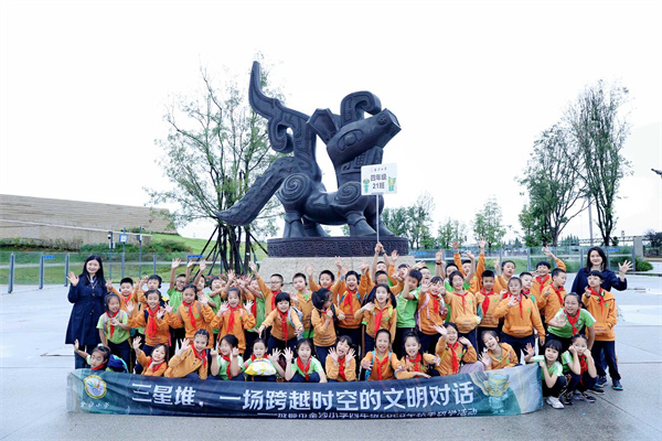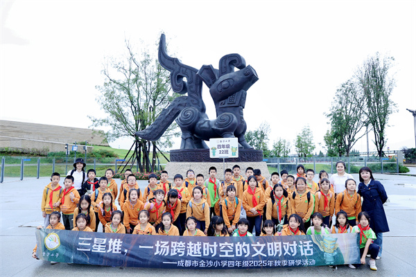 四年级 一场跨越时空的文明对话 秋风送爽,金沙小学四年级的孩子迎来了本学期的研学活动。这次,他们走进了三星堆博物馆,与几千年前的古蜀文明进行了一场跨越时空的对话。