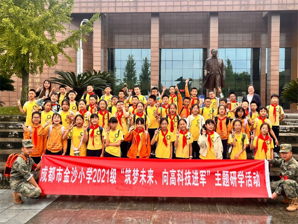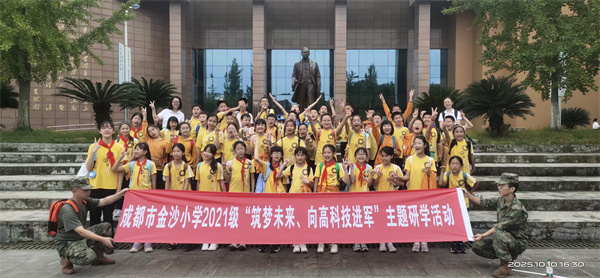 这次研学活动,使孩子们了解了古蜀文明,增强了他们热爱家乡、热爱祖国的情感,也使他们坚定了劳动创造美好生活的信念。 五年级 融合红色与科技,工匠精神植心间 2025年10月11日,金沙小学五年级学生赴郫都区研学。