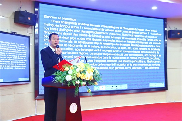 活动在充满法式风情的暖场音乐中拉开帷幕。陈刚热情致辞,他表示,学府小学始终秉持开放包容的办学理念,致力于推进国际化办学和跨文化理解教育,希望通过此类交流,促进中法教育理念的互鉴、文化的交融,为学生搭建更广阔的国际视野平台。