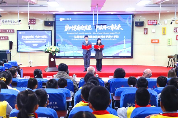 为积极推动教育国际化进程,加强中外人文交流,10月24日上午,法国师生代表团走进崇州市学府小学开展访学交流活动。参加本次活动的有来自法国芙拉斯堡市教育局、查尔斯学校、圣玛丽学校、玛丽·路易巴斯德大学文学院等多所学校的师生代表;郑州市管城区紫荆山南路小学党总支书记王利;中法艺术教育与文化发展协会顾问苏溪寒;中法艺术教育与文化发展协会会长何鸿达;崇州市学府小学党支部书记、校长陈刚,副校长沈红军及学府小学师生代表。活动由学府小学大队辅导员喻青松和法语老师王文睿主持。