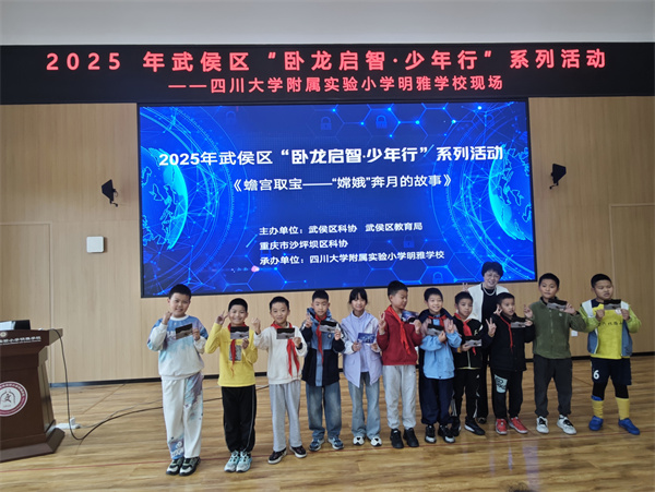 2025年10月22日,四川大学附属实验小学明雅学校(以下简称:川大附小明雅学校)的校园里洋溢着浓厚的科学氛围。中国航天科技国际交流中心研究员周武受邀到访,围绕2025年武侯区“卧龙启智·少年行”系列活动主题,带来《蟾宫取宝——“嫦娥”奔月的故事》专题讲座,为师生们开启了一场精彩的月球探测科普之旅。