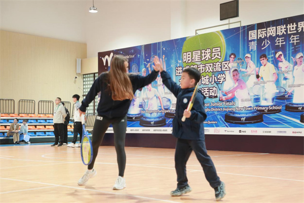当网球的活力撞上校园的朝气,当世界级运动榜样与少年梦想双向奔赴,一场跨越国界的体育文化交流盛典,于2025年10月24日在成都市双流区九江新城小学精彩上演!作为全球青少年网球最高级别赛事——国际网联世界巡回赛青少年年终总决赛的重磅配套活动,4名世界排名前10的青少年网球明星:克里斯蒂娜·佩尼科娃(美国)、查罗·埃斯基瓦·巴纽尔斯(西班牙)、杰琳·万德罗姆(比利时)、茱莉娅·斯图塞克(德国)及知名教练、国际网联官员:国际网球联合会世界网球巡回赛数据权益与球员发展部执行董事安德鲁·莫斯空降校园,与师生共赴网球之约,让国际体育魅力在校园绽放。