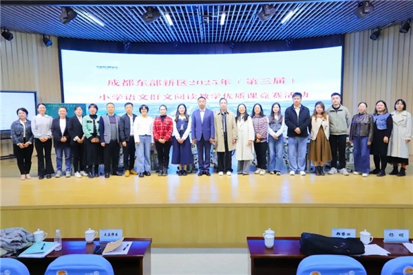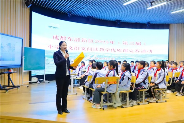 2025年10月27日,成都东部新区三岔湖小学校成功承办了成都东部新区第三届小学语文群文阅读教学优质课竞赛(决赛)活动。本次活动由各片区复赛胜出的8位教师同台竞技,邀请了成都市金牛区小学语文教研员杨明老师进行指导。东部新区教育发展研究院小学语文中心组老师、东部新区各校小学语文教师代表参加了本次活动。