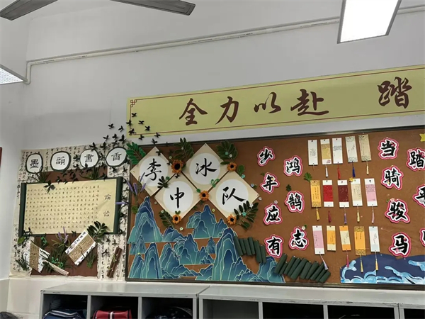 班级变身博物馆 文化育人更生动 各班级打破“重装饰、轻内涵”的传统模式,将文化建设的核心落在学生真实成长中。班级口号成为具体的行为引导,班规由师生共同商议制定,成为自觉遵守的准则。教室中不再堆砌冗余装饰,而是以“学习目标墙”“名人精神角”“班级公约区”等主题区域,营造出兼具教育功能与博物馆氛围的成长空间,真正实现从“视觉亮点”到“成长支点”的转变。