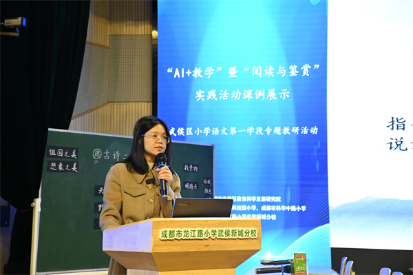 为落实语文课程新课标理念,有效推进“AI+教学”与低段语文课程的融合,助力第一学段落实“阅读与鉴赏”学习任务群的学习,全面提升语文核心素养,2025年10月29日上午,武侯区第一学段课例展示活动在龙江路小学武侯新城分校南区开展。此次活动由成都市武侯区教育科学发展研究院主办,成都市科华中路小学和成都市武侯科技园小学承办,龙江路小学武侯新城分校南区协办。成都市武侯区教科院教研员门雨红亲临指导。