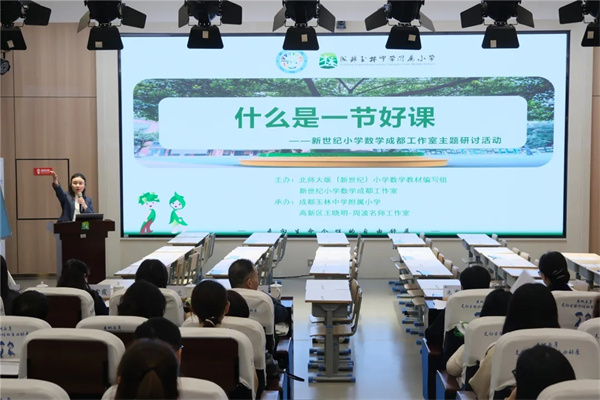 2025年10月28日,由北师大版(新世纪)小学数学教材编写组、新世纪小学数学成都工作室主办,成都玉林中学附属小学、高新区王晓明-周波名师工作室承办的“什么是一节好课”主题研讨活动在成都玉林中学附属小学(以下简称:玉林中学附小)顺利举行。活动邀请了新世纪小学数学教材分册主编、天津市特级教师朱育红,成都市幼小教育研究所所长张碧荣,四川省特级教师、新世纪小学数学成都工作室主持专家谢定兰,成都市特级教师、新世纪小学数学成都工作室顾问刘庆华,四川省特级教师、成都市金牛区政府督学杨薪意等专家莅临指导。同时,还有北京名校长研修班成员、新世纪小学数学成都工作室核心成员、成都市内市外兄弟学校以及区域1+N联盟校的老师们约150余人,共同参与此次活动。