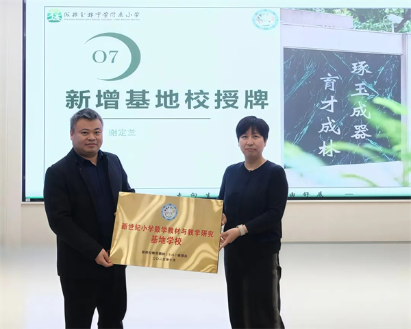 针对新教材中《旗杆有多高》一课实践操作中的困惑,杨薪意引导教师们深入思考该课程设置在三年级的意义。 活动期间还举行了新增基地校授牌仪式,既对小学数学教育工作给予充分肯定,更为学校搭建了与顶尖专家、同行交流合作的平台。未来,玉林中学附小将依托此平台,深化数学教材与教学改革,探索高效教学模式,为培养具有数学素养和创新能力的未来人才不懈努力。