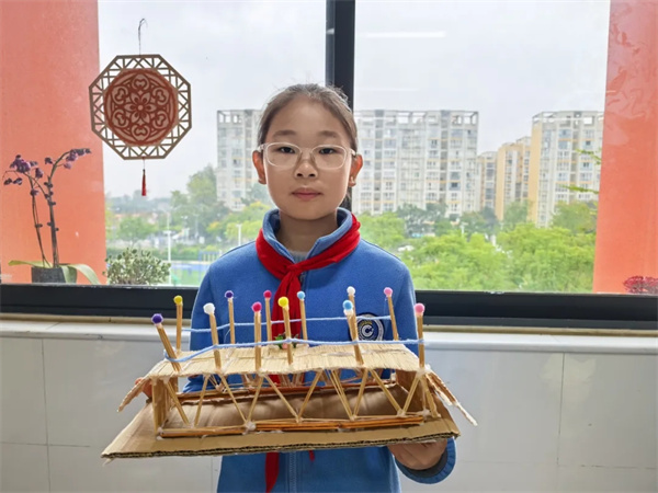 创意挑战:用思维“搭”出精彩 刘艳宁经常组织“魔方教学”和“牙签桥设计”等创意活动。教魔方时,她不只是传授口诀,更会拆解“魔方每一面的色块分布规律”,让学生理解“如何通过数学逻辑还原魔方”,同时鼓励大家分享不同的解题思路。而“牙签桥设计”则是团队协作的考验,孩子们用牙签和胶水搭建桥梁,从设计图纸到计算材料用量,再到测试桥梁承重能力,全程都离不开数学思维的支撑。当看到自己搭建的牙签桥成功托起好几本作业本时,孩子们的脸上都洋溢着满满的成就感。