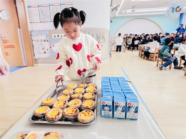 营养早点,活力满满 首先是早点环节,在老师的引导下,孩子们有序取餐,按需取量,做到不推不挤。