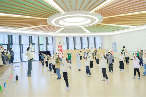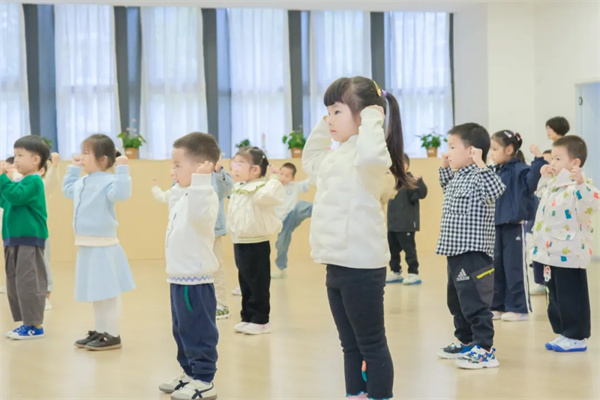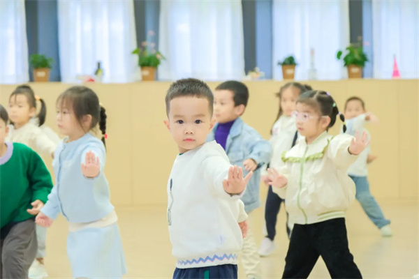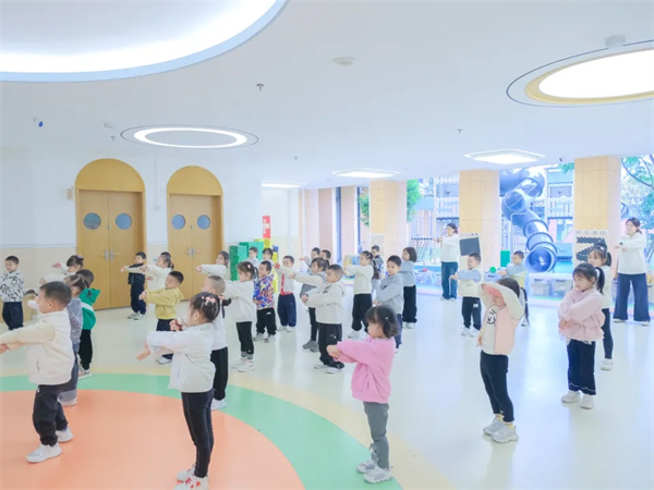 随着欢快的音乐响起,孩子们迅速站位,个个身姿挺拔、精神抖擞,展现了出色的身体协调性。