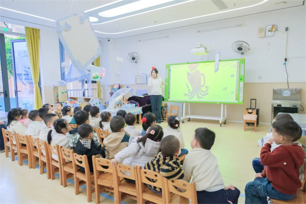 活力满满的早操,不仅让家长们看到了孩子们积极向上的精神风貌,也感受到了属于孩子的那份激情与快乐。 集教活动,智慧启迪 集体教学环节精准贴合中班幼儿年龄特征,让“学习”成为孩子主动探索的乐趣。在教学过程中,老师运用多种教学方法,如提问、讨论、游戏等,充分调动了孩子们的积极性和主动性。