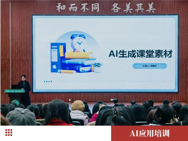 分阶培训,场景推进 从“个体”走向“群体” 学校组建场景实践项目组,分批分阶培训,注重技术应用与学科融合,充分发挥首席教师引领作用,体现项目组、学科组群体效应,将“AI+教学”从个体走向群体,从单科走向全科。