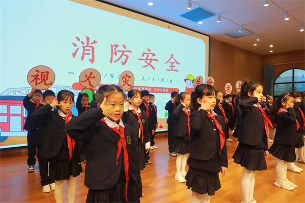 每年的11月9日,是我国的“119”消防安全宣传日。为增强全校师生的消防安全意识,引导他们掌握更多的自救、逃生、自我保护具体方法,近日,成都市实验小学西区分校开展了一系列的消防主题活动。 国旗下宣讲:消防知识“活”起来 学生们化身“安全小使者”,用简短又鲜活的表演,打破了传统宣讲的枯燥,让消防安全知识在趣味中传递。