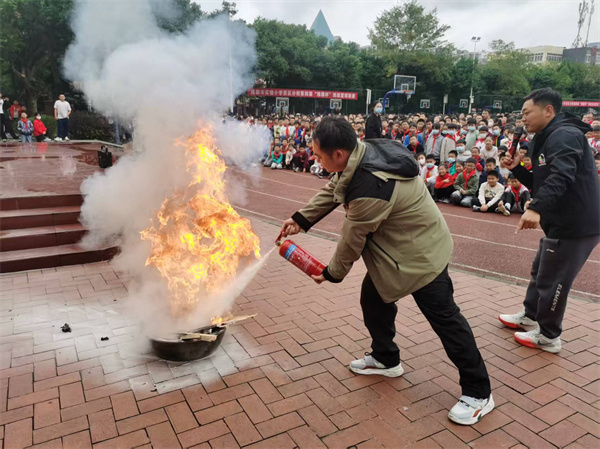 警报拉响,烟雾弹开启“实战模式”!实小西区分校的师生们弯腰捂鼻快速撤离,3分钟安全集结。安全员现场教学,老师、同学亲手操作灭火器扑灭火源,从“小白”变身“灭火达人”!(赖波 通讯员 胡念) |