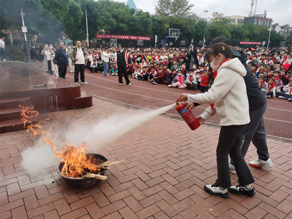 灭火器操作姿势到位,实小西区分校师生get正确灭火技能
