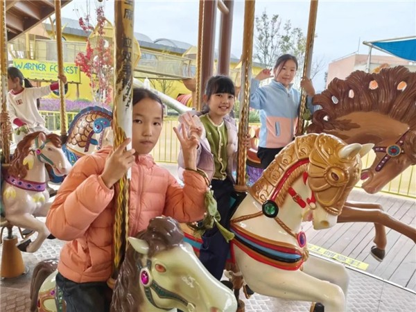 橘乐时光:童趣飞扬绽笑颜 研学尾声,小“橙”堡乐园成为欢乐的海洋。橙子公主城堡、星际战舰、旋转木马……同学们在柑橘主题游乐设施中尽情奔跑、畅玩,释放学习与实践的疲惫,一张张笑脸定格成秋日里最温暖的画面。