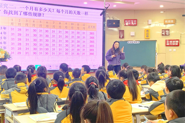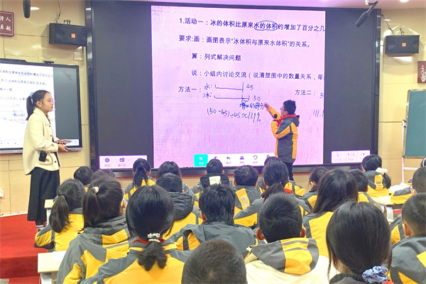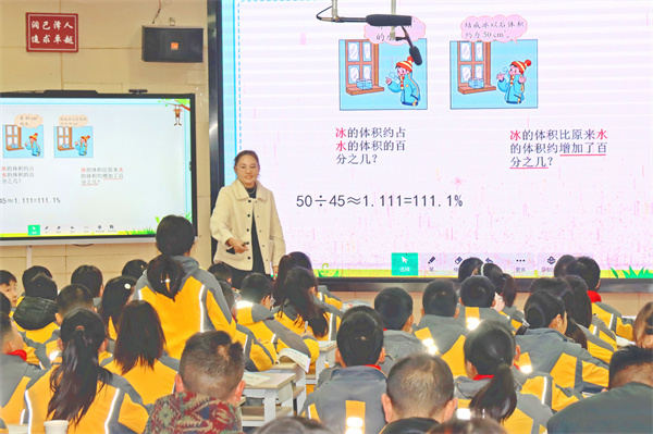 随后,活动进入课堂观摩环节。付婷老师执教的《年月日知多少》,以巧妙的设问激发学生探究兴趣,让抽象的数学知识与生活实际紧密相连;彭瑜老师带来的《百分数的应用(一)》,从“水结成冰”的自然现象切入,引导学生层层深入,在思考中建构数学模型,发展了学生核心素养。两堂课各具特色,均展现了学府小学在课堂教学改革方面的积极探索。