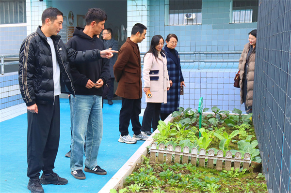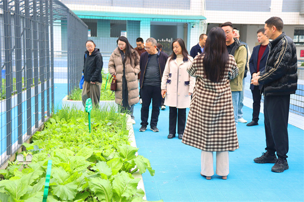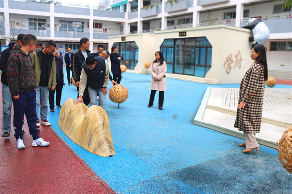 研讨结束后,日部乡中心小学的老师们走出学术厅,沉浸式感受学府小学的日常。活力四射的大课间活动,展现了学子们的蓬勃朝气;而极具特色的校园文化更是亮点纷呈——绿意盎然的种植园里,孩子们亲手栽种的蔬果引得大家连连称赞;充满巧思的竹编工作坊,则将传统文化的魅力与劳动教育完美融合,令来宾们赞不绝口。