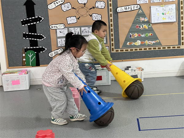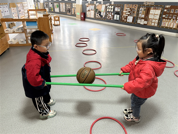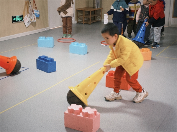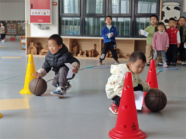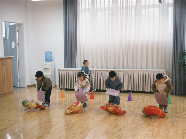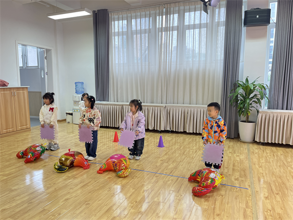 闯关竞技,趣享运动 中班组教师结合幼儿兴趣与体能发展需求,设计了丰富多样的趣味游戏项目,活动以幼儿自主闯关打卡的形式开展,各班幼儿积极参与,在趣味挑战中收获快乐与成长。 ·赶鸡入笼