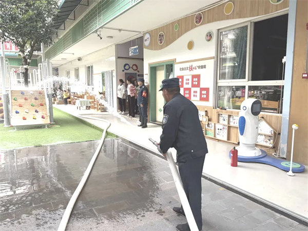 “不留死角”除隐患 为从源头杜绝火灾隐患,鱼凫幼儿园开展了拉网式消防安全隐患排查工作,做到“全覆盖、无死角、零遗漏”,安全管理员带领后勤部门人员对园区内消防设施进行了全面的检查。