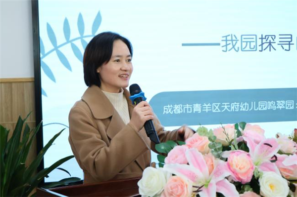 青羊区天府幼儿园鸣翠分园园点负责人刘小艳围绕新建园愿景规划与战略定位、团队建设与师资培养、品牌塑造与特色彰显等方面,为大家详细介绍了该园将“创享理念”扎根幼儿园文化建设的实践探索。