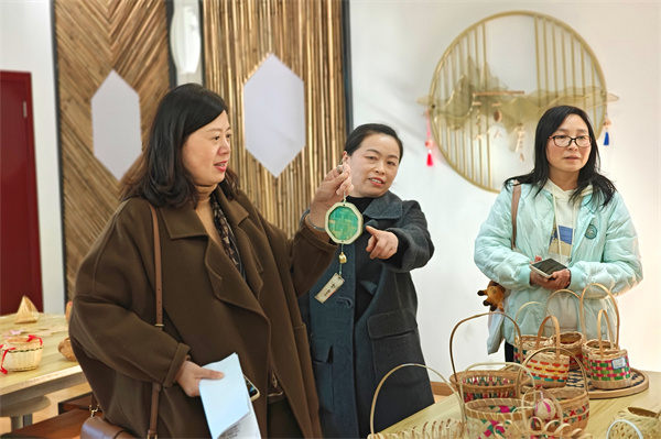 展示课后,课题组成员沉浸式参与竹编体验活动。在道明小学竹编教师的指导下,大家亲手尝试挑、压、编、织等技法,从整理竹条到完成简易竹编作品,在动手实践中深入体会传统工艺的魅力,也直观感受了“做中学、学中悟”的跨学科学习理念。随后,大家参观了道明小学校园竹编课程成果展区及校园文化建设,近距离观摩竹编教学素材、学生作品,详细了解该校竹编课程与语文、美术、劳动等学科的融合路径。
