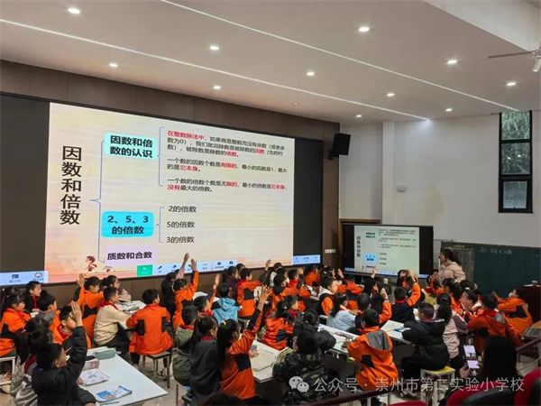 活动中,谢孟芸老师首先呈现一节《倍数与因数》单元复习示范课。她巧妙运用单元整体思维导图构建知识网络,并引导学生基于自主准备的题目进行互动复习。课堂核心环节是学生以小组为单位,合作梳理特定知识点并面向全班进行讲解与出题,最终以趣味PK游戏巩固所学。尤为突出的是,谢孟芸将小组合作学习从形式走向实质,课堂讨论真实深入,并通过个人与小组双线并行的板书评价机制,有效落实了“教学评一体化”理念。