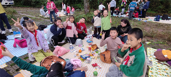时值11月,天朗气清,学校五年级全体师生与家长志愿者相伴而行,奔赴桃源湖开启了一场集徒步、野餐、互动于一体的秋日户外实践活动。 活动当日,师生们从校园出发徒步前往湖畔,沿途饱览秋日盛景,既舒展了身心、锻炼了耐力,也加深了对自然环境的感知;抵达后,各班铺展野餐垫,分享美食的同时,孩子们还唱起了铿锵的红歌《当那一天来临》;全程师生与家长志愿者共同践行环保,垃圾随手收纳,尽显文明风貌。