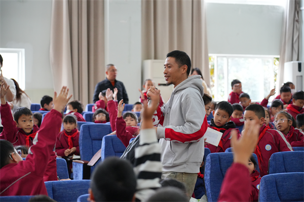 这次讲座不仅是一次科普,更是一场心灵洗礼。王东睿在互动环节与孩子们亲切交流,鼓励大家提出自己的环保想法和疑问,孩子们纷纷举手,踊跃表达自己的想法。为鼓励大家积极参与,现场还特别准备了精美的主题礼品,这些小礼物不仅是一份纪念,更是一份绿色承诺,鼓励孩子们将保护动物的理念带入校园、融入生活,做守护的践行者。