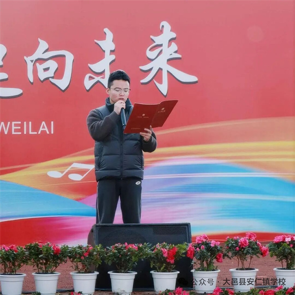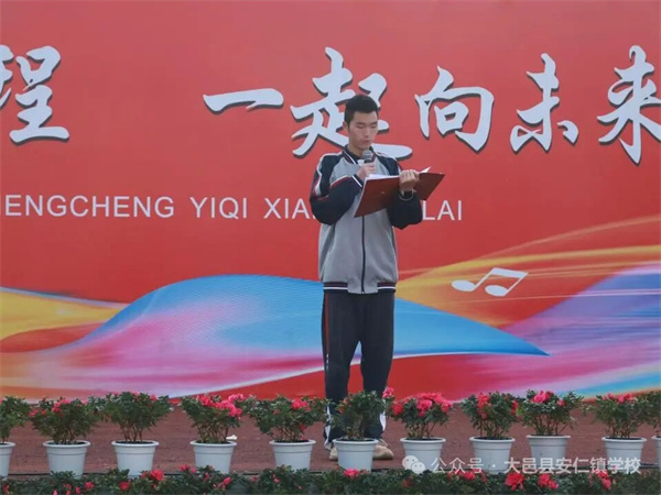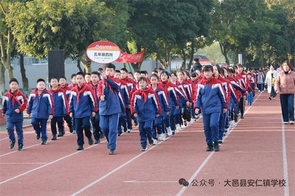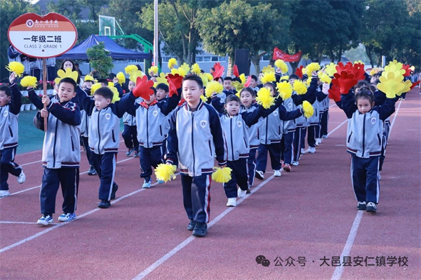 2025年11月20日,晨曦铺洒赛场,大邑县安仁镇学校操场之上,彩旗猎猎、歌声飞扬,全校师生齐聚一堂,共同见证第十五届博艺文化节盛大启幕。这是一场融合速度与力量、镌刻团结与拼搏的体育盛会,更是一次少年意气的尽情挥洒、青春风采的集中绽放。 入场式:方阵铿锵,少年意气扬 当《运动员进行曲》激昂奏响,入场式正式拉开序幕。国旗队、校徽队、彩旗队率先登场,为这场盛会拉开庄重序幕。鲜红的国旗迎风招展,承载着安校人最坚定的信仰;设计精美的校徽,彰显着拼搏奋进的精神内核;五彩斑斓的彩旗如海洋涌动,预示着运动会的精彩纷呈。紧随其后的是各班级方队,从一年级的懵懂萌娃到九年级的热血少年,每个方阵都带着独特的风采与气场。