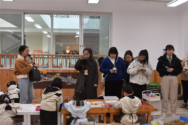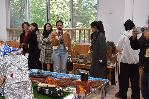 短暂的休息后,教师们又进入全园各个艺术工作坊,观摩“美术工作坊”活动。在保教主任李佳阳的引导下,老师们参观了各个美术工作坊的活动现场。孩子们在活动中展现出的专注力与创造力,生动诠释了五幼培风的教育理念,形式多样的美术活动也引发了老师们的浓厚兴趣,纷纷驻足观察,并与工作坊教师进行讨论交流,了解美术工作坊的运行方式和活动亮点,并对这种以儿童兴趣为导向的活动形式给予高度评价。