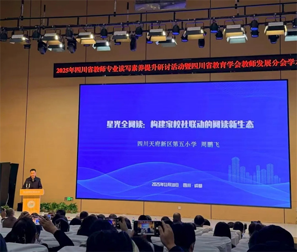 为深入推动教师专业成长与教育高质量发展,2025年四川省教师专业读写素养提升研讨活动暨教师发展分会学术年会于11月18日在天府新区隆重启幕。此活动由四川省教育学会、四川省教师发展中心主办,四川省教育学会教师发展分会、四川天府新区教育科学研究院承办,四川天府新区第五小学(以下简称:天府五小)及多所学校共同协办。本次活动以“书香润教·读写共生”为主题,汇聚省内教育专家及一线教师代表,共同探讨教师读写素养提升之路。