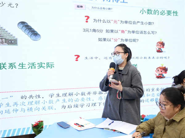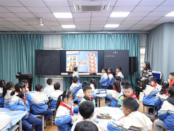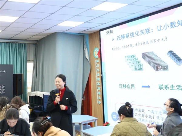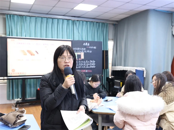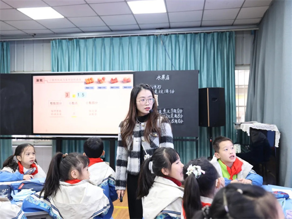 2025年11月19日,一场以“秋天水果店”为主题的“四环进阶”生长课堂数学教学研讨活动在四川天府新区南湖小学会议室如期开展。全体数学教师以课为媒,聚焦核心素养落地,共同探索“四环进阶”教学模式的实践路径,让教研之花在深秋绽放别样光彩。 课堂展示: 情境赋能,四环进阶促深度学习 何青清老师秉持“为学生的深度学习而教”理念,以“丰硕的秋天”为背景,创设真实“水果店”情境,将小数的认识与生活实践深度融合。课堂遵循“触发—初探—深究—活用”四阶教学路径,整堂课以学生为中心,层层递进的教学环节不仅让抽象的数学知识变得直观可感,更搭建了清晰的思维发展阶梯,生动诠释了“四环进阶”生长课堂的实践魅力。