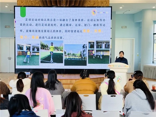 成大附一幼的高川梅老师在《绿茵征程,尽在足下》案例中,通过四个小案例展现了幼儿在足球游戏中表现出的勇敢、坚持与团队精神。陆露老师则以《竹跃童心舞动成长》为主题,介绍了幼儿在竹竿游戏中发现问题、解决问题的过程。
