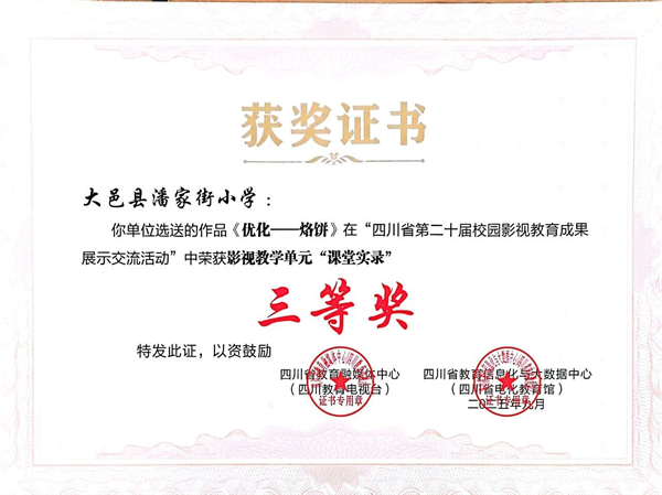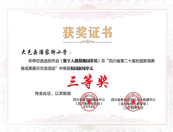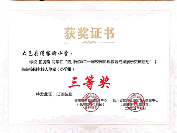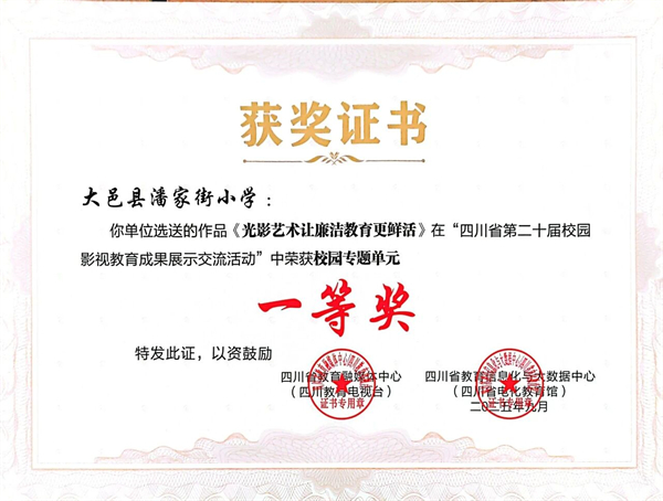 2025年11月14日,四川省第二十届校园影视教育成果发布展示交流活动在南充市举行。大邑县潘家街小学凭借出色的校园影视作品,从众多参赛学校中脱颖而出,斩获十三个奖项,其中一等奖三个,展现了学校在素质育人与特色教育领域的扎实成效。