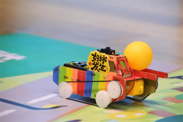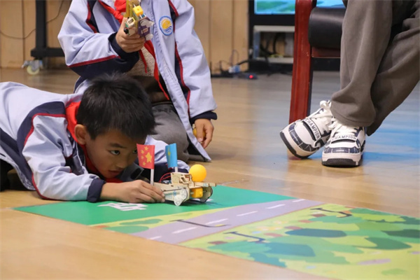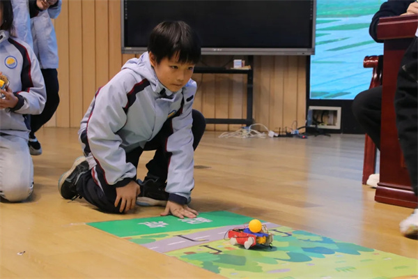 11月20日中午,比赛正式拉开帷幕。现场裁判全程公平公正记录评分。赛场上,选手们个个屏息凝神,手指在操控部件上快速调整角度,眼神紧紧锁住机器人的行进轨迹;有的机器人刚出发就精准突破障碍,引得观赛师生满堂喝彩;有的遇到微小偏差,小选手额角沁出的细汗也顾不上擦就去调整机器人。
