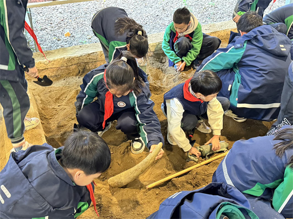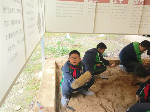 田野考古体验环节更是让同学们兴奋不已。在模拟考古现场,大家小心翼翼地清理“发掘坑”,刷土、挑拣,一系列规范操作有模有样。当“三星堆特色文物复制品”被成功“发掘”时,现场欢呼声此起彼伏,同学们在亲身实践中不仅了解了考古工作的严谨流程,更体会到文物保护的重要意义。