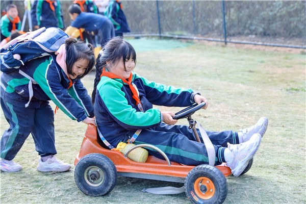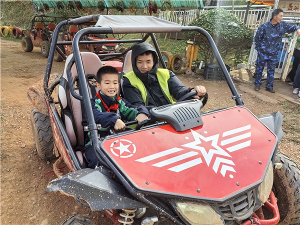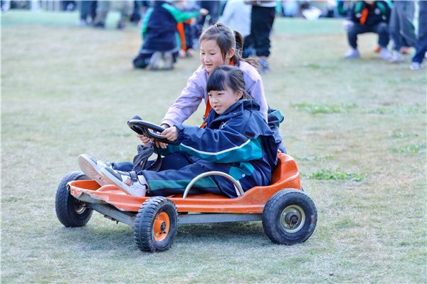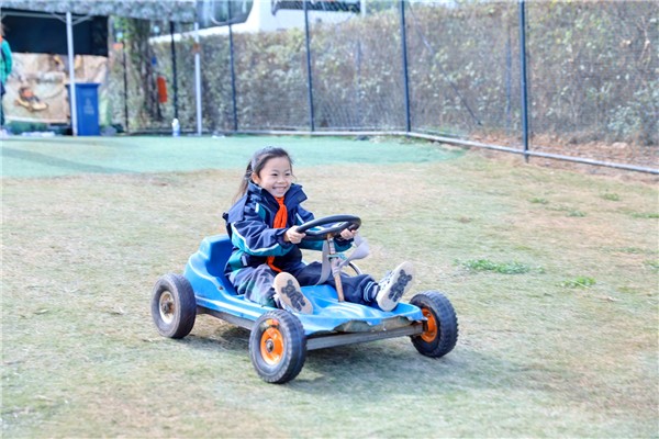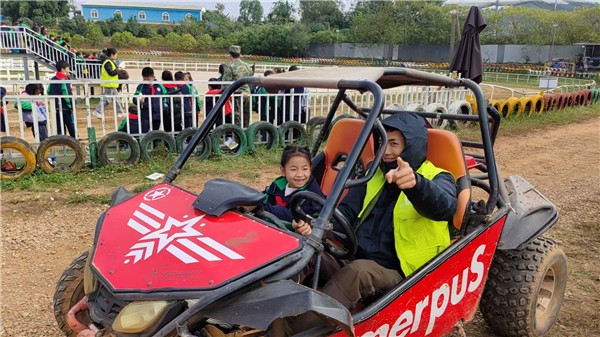 卡丁车区域超热闹!小朋友们坐进帅气的卡丁车,引擎“嗡嗡”的声音超有气势。风从耳边轻轻吹过,大家笑得眼睛都弯了,尽情感受着这份特别的快乐,每个小朋友都像威风的小赛车手!