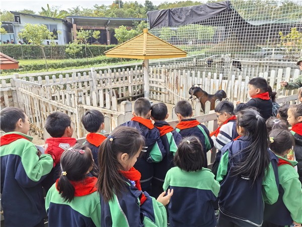 萌宠乐园里藏着好多可爱的小动物!小朋友们围在围栏边,轻轻和小动物打招呼,认真看着它们吃东西、玩耍的样子。有的小动物眨着圆溜溜的眼睛,好像在回应大家,小朋友们看得入迷,脸上都挂着甜甜的笑容!