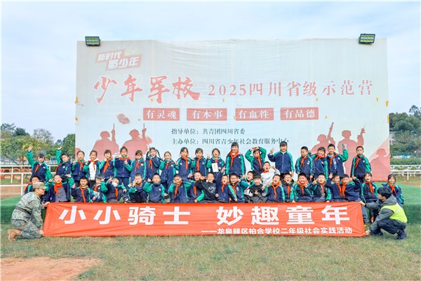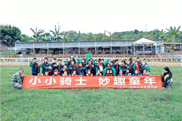 当阳光洒满营地,当马蹄轻踏绿茵,成都市龙泉驿区柏合学校二年级的“小小骑士”们怀揣着激动与好奇,开启了以“小小骑士,妙趣童年”为主题的趣味马术研学之旅! 校门前的集结号准时响起!背着小书包、眼神亮晶晶的孩子们,在老师的带领下有序集合、分组列队。一路上,大家叽叽喳喳分享着对马术的期待,车窗外的沿途景致与车内的欢声笑语交织,向着马术俱乐部快乐进发。