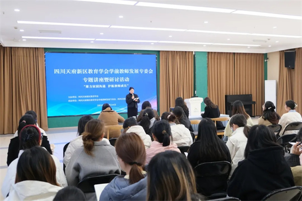 2025年11月24日上午,由四川天府新区教育学会主办、学前教育教师发展专业委员会与学思幼儿园共同承办的“聚力家园沟通,护航教师成长”专题讲座暨研讨活动在学思幼儿园顺利开展。天府新区教育学会秘书处卢静敏老师、天府新区教科院教研员彭庆老师、学前教师发展专委会秘书长张进园长,以及专委会成员参加了本次活动。 活动聚焦家园沟通能力的提升,通过专家引领与园所实践经验交流相结合的方式,为新区幼儿教师搭建交流互鉴、共同成长的平台。