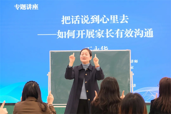 专家引领 言为心声,沟通共情 全国妇联《中国妇女》“专家来了”特约讲师、四川省妇联-家庭教育师资培训特邀专家王永华老师作《把话说到心里去——如何开展家长有效沟通》专题讲座。王永华从“有效沟通的基本前提”“有效沟通的万能钥匙”“家园沟通的运用场景”三个方面展开专业指导,幽默风趣地分享了有效的沟通技巧和策略,帮助教师厘清沟通逻辑、掌握实用技巧,真正实现“与家长同频,让教育同心”。