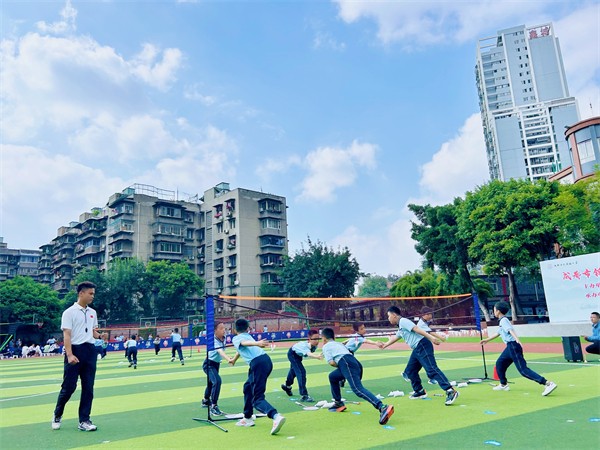 于锦江之畔,成都市龙舟路小学以运动为笔,蘸文化之墨,绘就一幅“墨韵体育”生动长卷。 起笔·焦墨立骨,夯实体育根基 学校以“焦墨”之劲,筑牢阳光体育之基。面对场地局限,巧妙规划“龙舟航线”,将边角走廊化为“竞速航道”,拓展运动空间。构建“龙舟式协同机制”,校长引领、教师专攻、班主任协同,全员聚力体育育人。每日锻炼一小时扎实落地,铸就“成都市阳光体育示范学校”的坚实风骨。