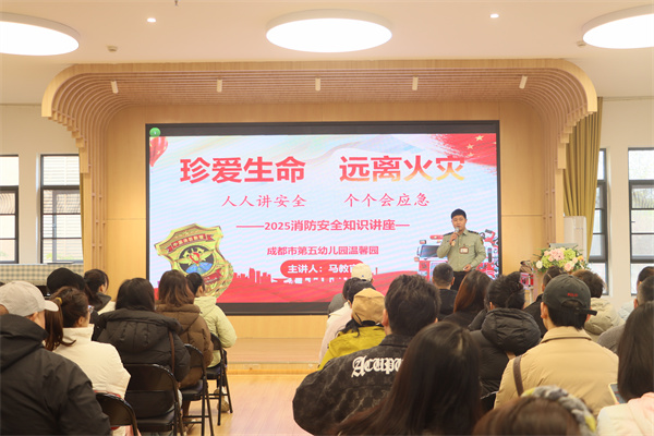 幼儿安全工作重于泰山,为了普及消防知识,加强消防安全教育,进一步做好幼儿园防范工作,增强幼儿及家长的消防安全意识和自我保护能力,提高教职工、家长、幼儿对消防安全事故的应变能力,2025年11月19日,成都市第五幼儿园温馨园(以下简称:成都五幼温馨园)特邀请四川省消防协会的教官,为教职工及家长上了一堂易懂、易记、实用性强的消防安全知识讲座,并开展了“逃生帐篷”亲子体验活动。 消防教官利用PPT从真实、生动的案例切入,围绕“火灾的现实危险”“火灾的预防”“初起火灾的扑救方法”“火场疏散逃生自救技巧”“如何正确使用消防器材”等方面进行讲解,让家长认识到了火灾的危害性、随机性,明确了掌握消防知识的重要性、必要性。
