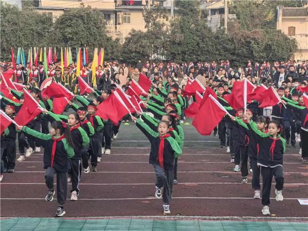 校长王聪寄语全体运动员秉持“友谊第一,比赛第二”的原则,在赛场上挑战自我、勇攀高峰,同时鼓励师生们以体育为媒,锤炼意志、凝聚力量。随后,运动员代表与裁判员代表依次庄严宣誓。最后,王聪宣布运动会正式开幕,彩旗队与教师团体环绕操场慢跑一周,师生欢呼声响彻云霄。